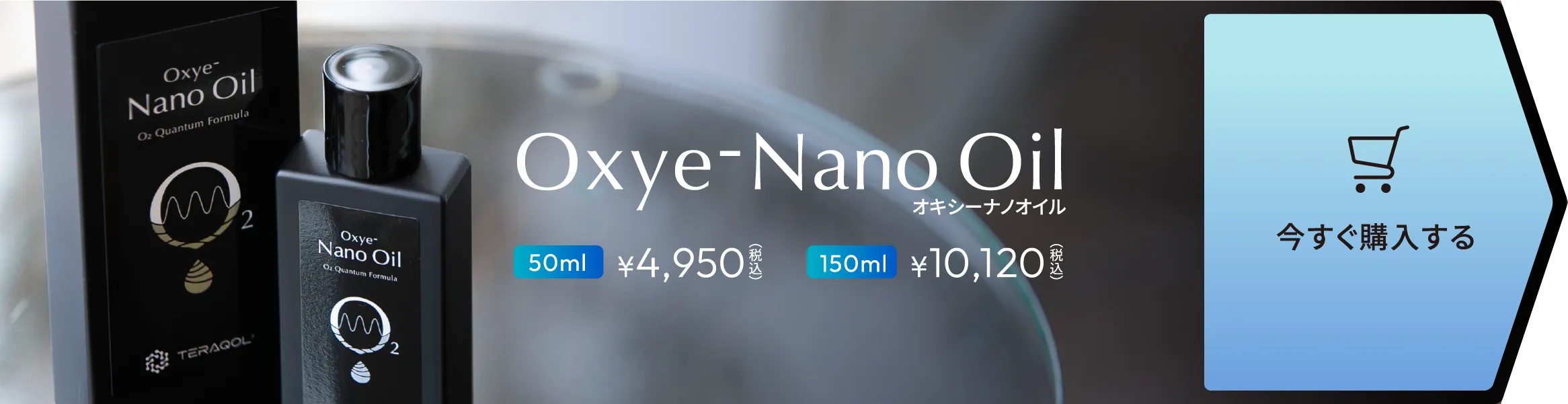 TERAQOL®は、日本初の量子波テクノロジーを活用し、成分のポテンシャル(可能性)を引き出す革新的な技術です。特定の周波数帯(テラヘルツ~遠赤領域)で振動共鳴させ、オイルや水などの物質にエネルギーを与えることで、安定性・浸透性・持続性をサポートします。日々のケアに「静かに、深く届く力」をプラスします。Oxye-Nano Oil(オキシーナノオイル)は、このTERAQOL®技術により生まれました。TERAQOL®は株式会社アクアデザインの登録商標です。
