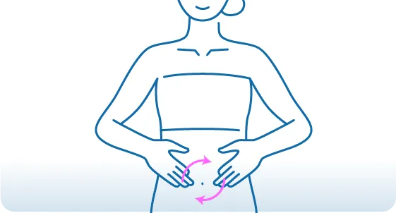 おへそ周りを時計回りに塗布、腹部全体をやさしく円を描くように馴染ませてください。