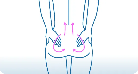 骨盤周辺も手のひらで大きく包み込むようにやさしくなじませるのがポイントです。