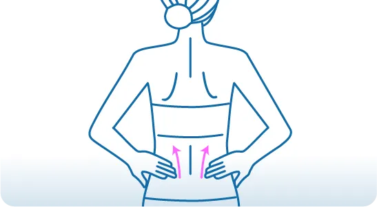両手を腰骨の上に添えて、背骨の両側に沿って上方向へなじませます。