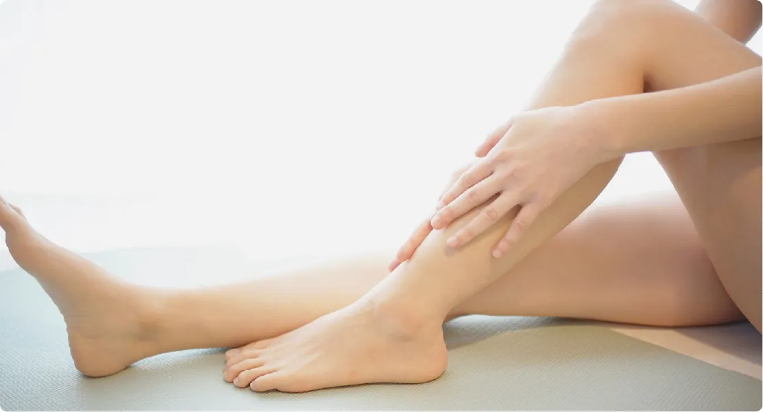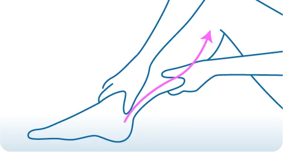 気になるとき足首から膝方向に向けて、ふくらはぎを下から上に撫でるように馴染ませます。